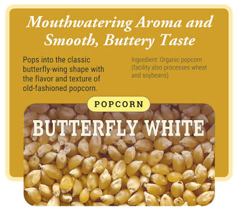 “This fluffy white popcorn pops into the classic butterfly wing shape, and has the aroma and smooth, buttery taste of good old-fashioned popcorn. You can make a mouthwatering batch of popcorn in minutes — either in your popcorn popper, or on your stove top. For the latter method, just put 1/4 cup popcorn and 1 tablespoon oil in a heavy pot over medium heat. Shake the pot until the popping stops, pour into a bowl, then top with your favorite seasonings and enjoy! Note: Store unpopped popcorn in a cool, dry place.” ~Janie’s Mill